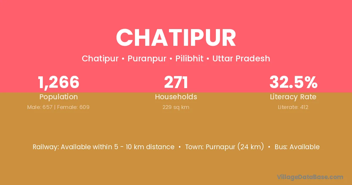 Chatipur village has a total population of 1,266 people, of which 657 are males and 609 are females.