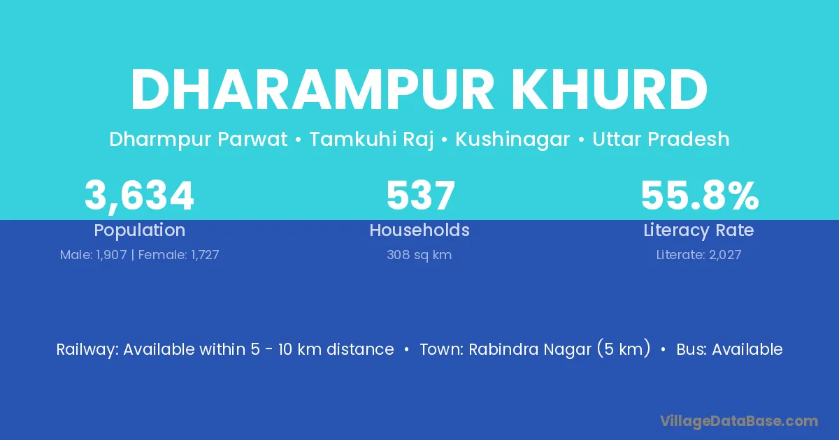 Puranpur is the nearest town to Dharampur Khurd village for major economic activities