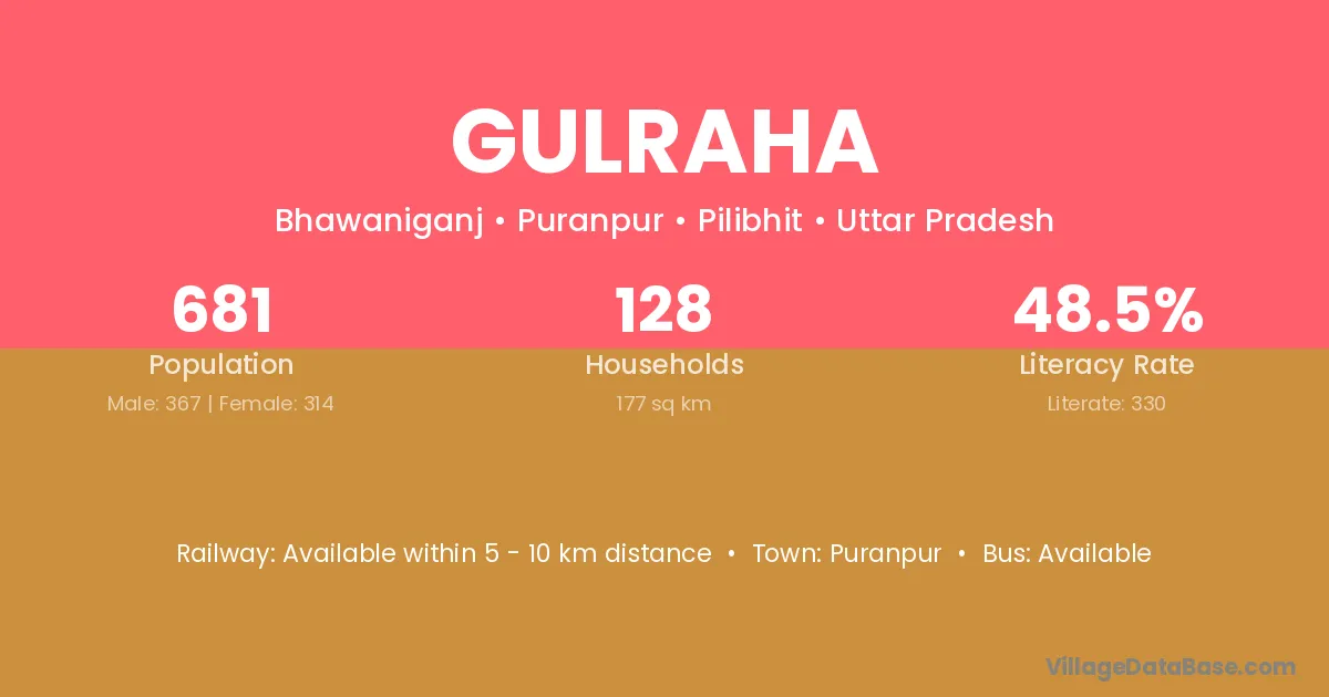 Puranpur is the nearest town to Gulraha village for major economic activities