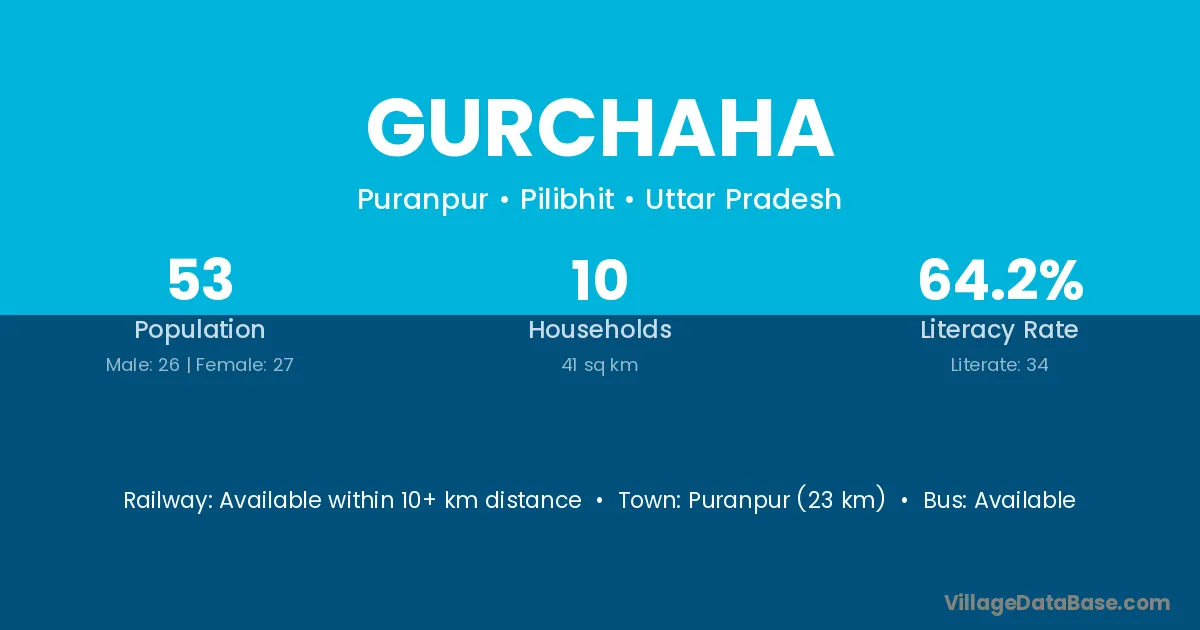 Gurchaha village has a total population of 53 people, of which 26 are males and 27 are females.