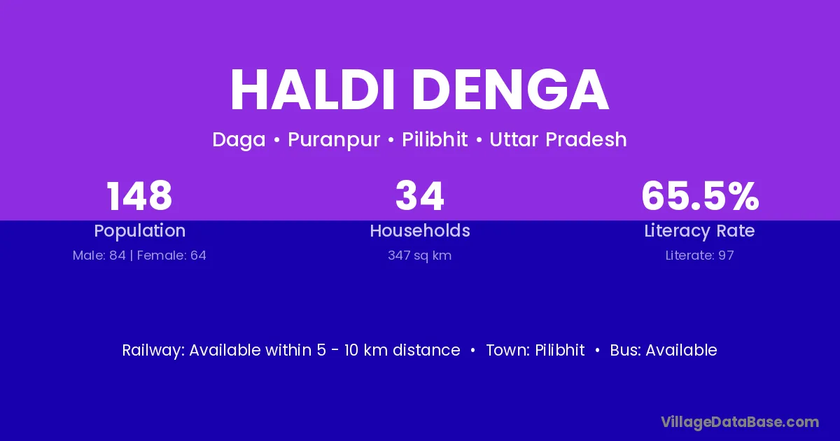 Pilibhit is the nearest town to Haldi Denga village for major economic activities