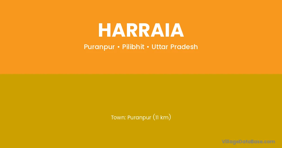 Puranpur (11 km) is the nearest town to Harraia village for major economic activities and is located approximately 11 km away.