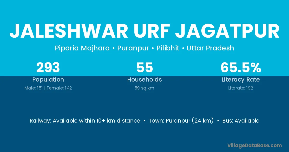 Jaleshwar Urf Jagatpur village has a total population of 293 people, of which 151 are males and 142 are females.