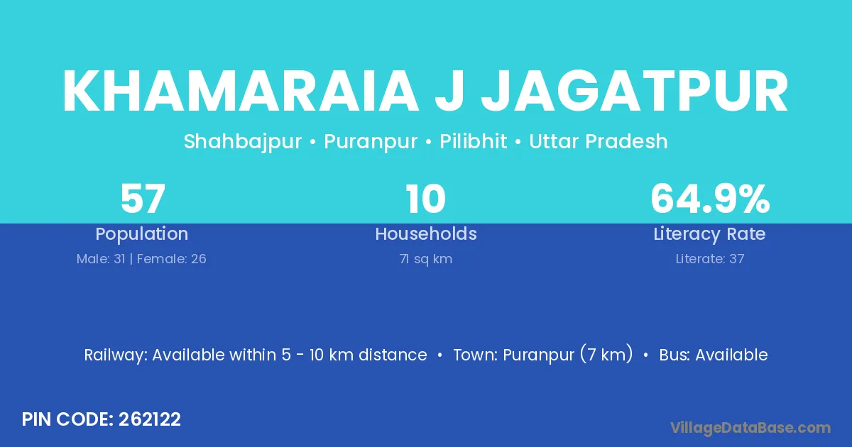 Puranpur (7 km) is the nearest town to Khamaraia J Jagatpur village for major economic activities and is located approximately 7 km away.