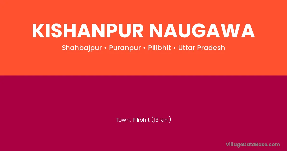 Pilibhit (13 km) is the nearest town to Kishanpur Naugawa village for major economic activities and is located approximately 13 km away.
