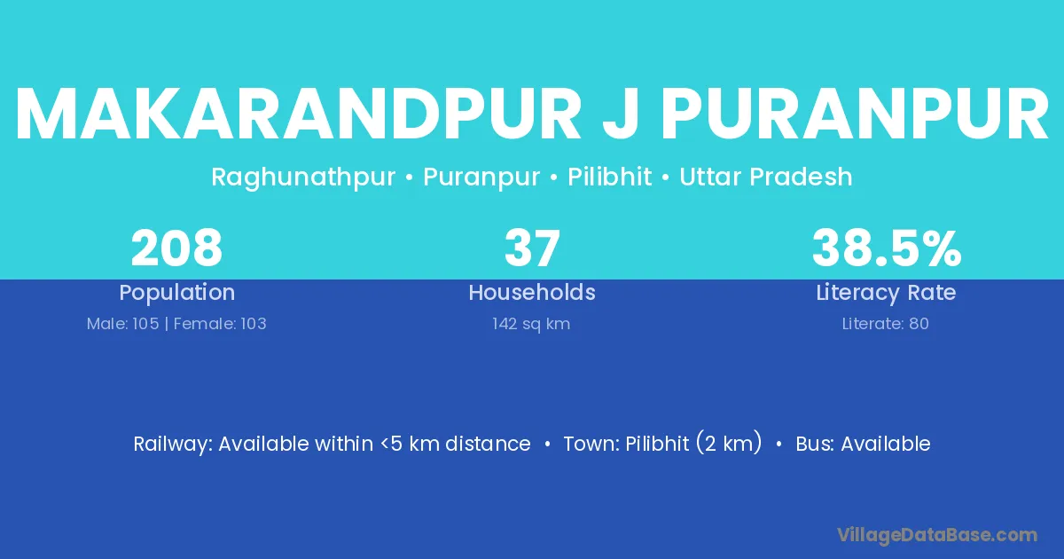 Makarandpur J Puranpur village has a total population of 208 people, of which 105 are males and 103 are females.