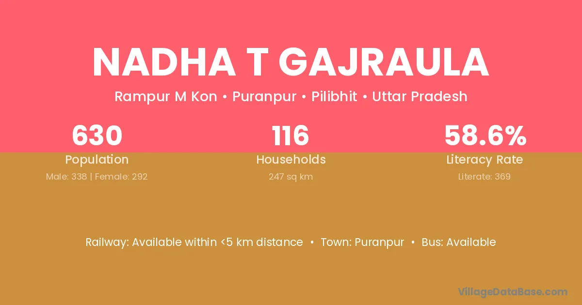 Puranpur is the nearest town to Nadha T Gajraula village for major economic activities