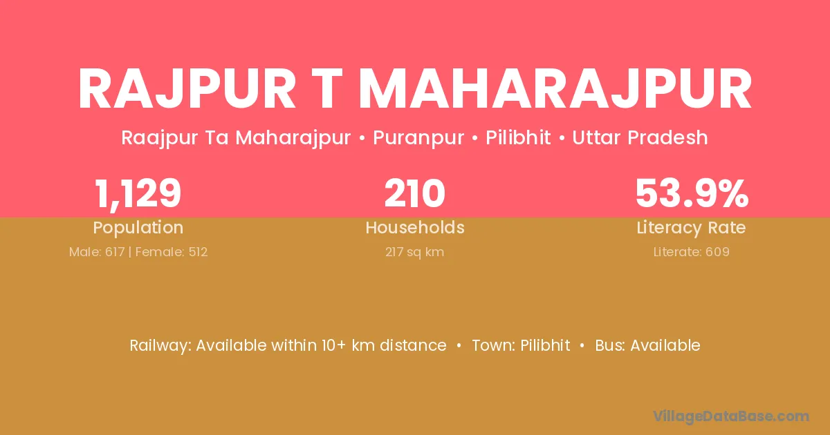 Rajpur T Maharajpur village has a total population of 1,129 people, of which 617 are males and 512 are females.