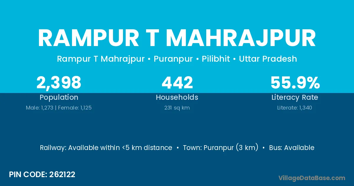 Puranpur (3 km) is the nearest town to Rampur T Mahrajpur village for major economic activities and is located approximately 3 km away.