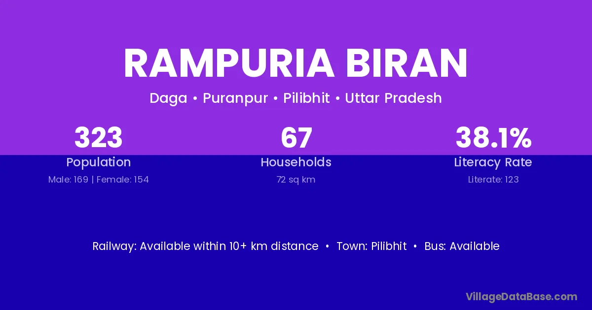 Pilibhit is the nearest town to Rampuria Biran village for major economic activities