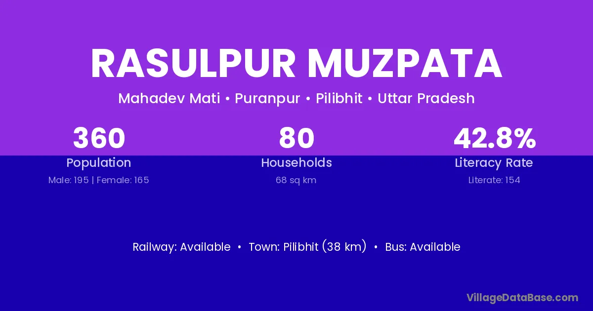 Rasulpur Muzpata village has a total population of 360 people, of which 195 are males and 165 are females.