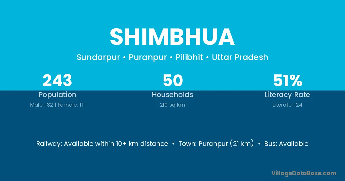 Puranpur (21 km) is the nearest town to Shimbhua village for major economic activities and is located approximately 21 km away.