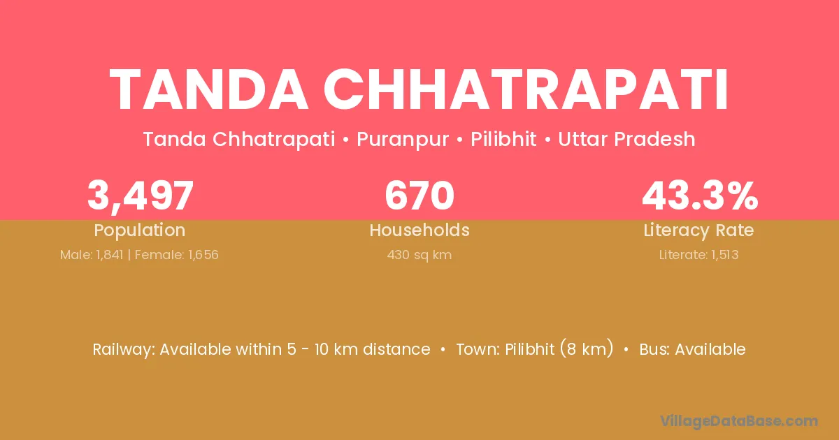 Pilibhit (8 km) is the nearest town to Tanda Chhatrapati village for major economic activities and is located approximately 8 km away.
