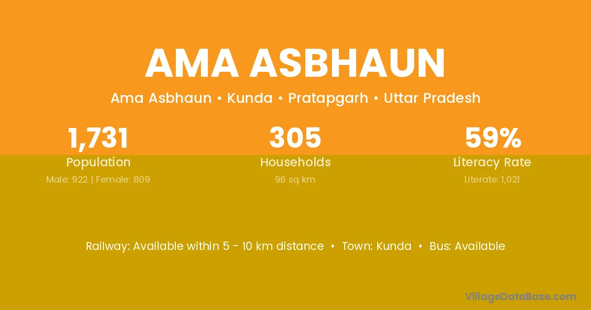 Ama Asbhaun village has a total population of 1,731 people, of which 922 are males and 809 are females.