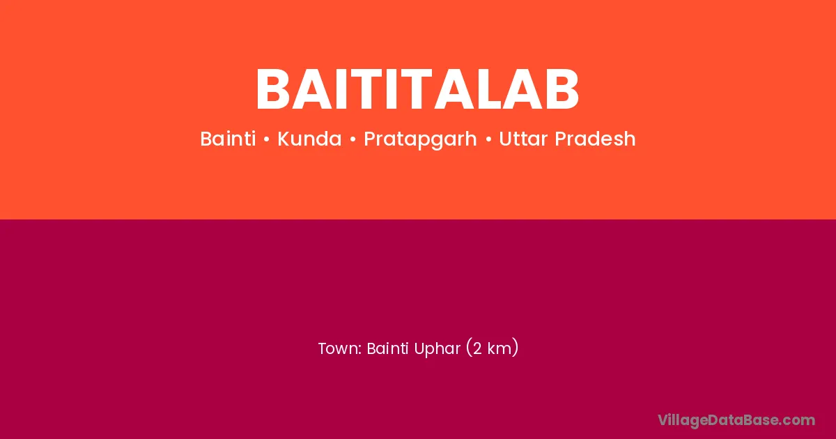 Bainti Uphar (2 km) is the nearest town to Baititalab village for major economic activities and is located approximately 2 km away.