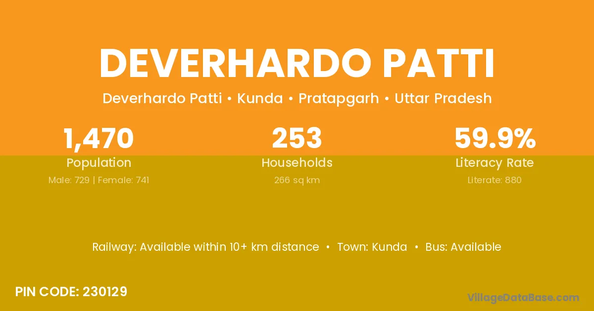 Deverhardo Patti village has a total population of 1,470 people, of which 729 are males and 741 are females.