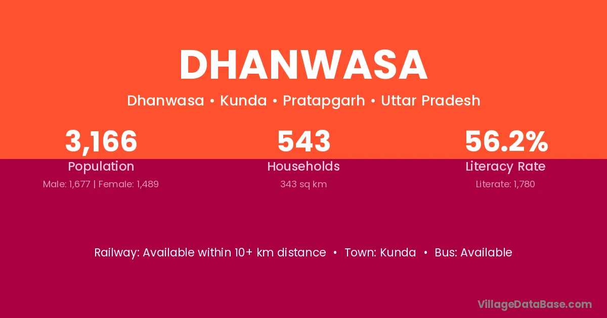 Dhanwasa village has a total population of 3,166 people, of which 1,677 are males and 1,489 are females.