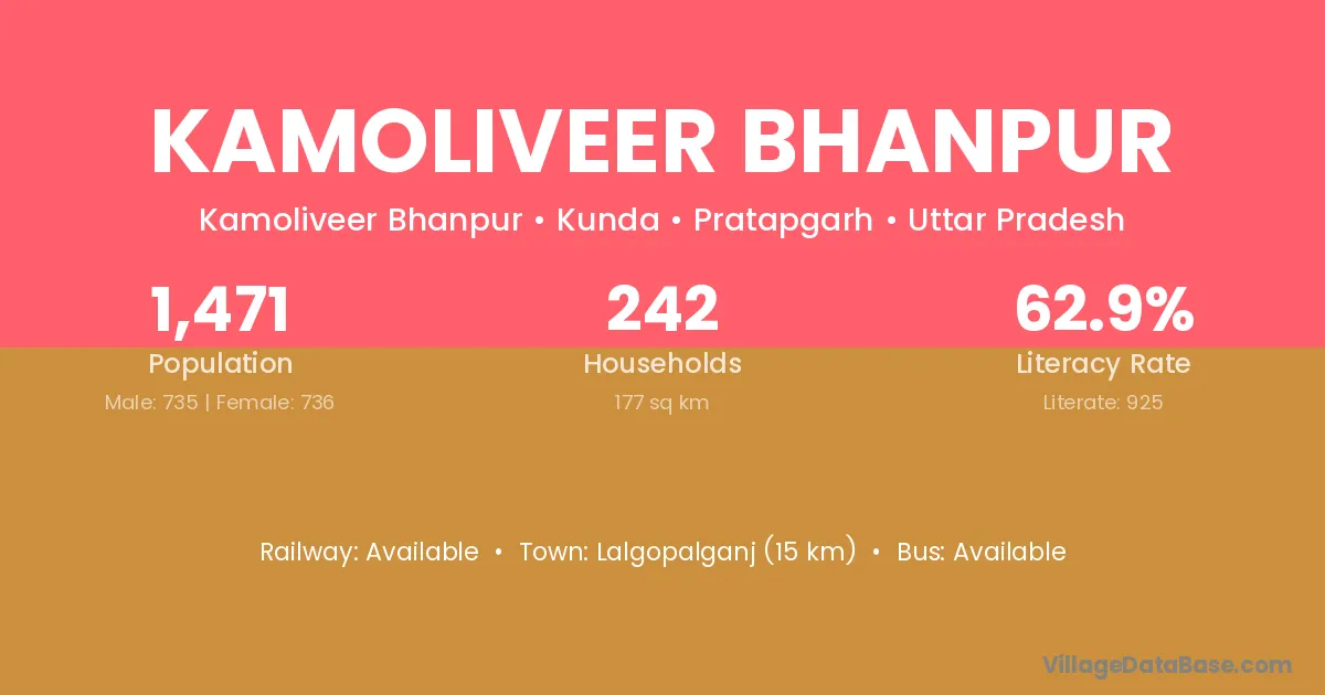 Lalgopalganj (15 km) is the nearest town to Kamoliveer Bhanpur village for major economic activities and is located approximately 15 km away.