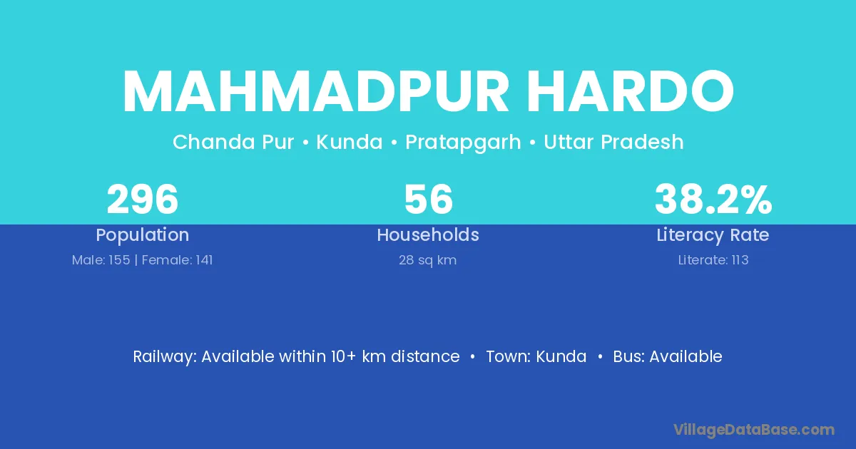 Mahmadpur Hardo village has a total population of 296 people, of which 155 are males and 141 are females.