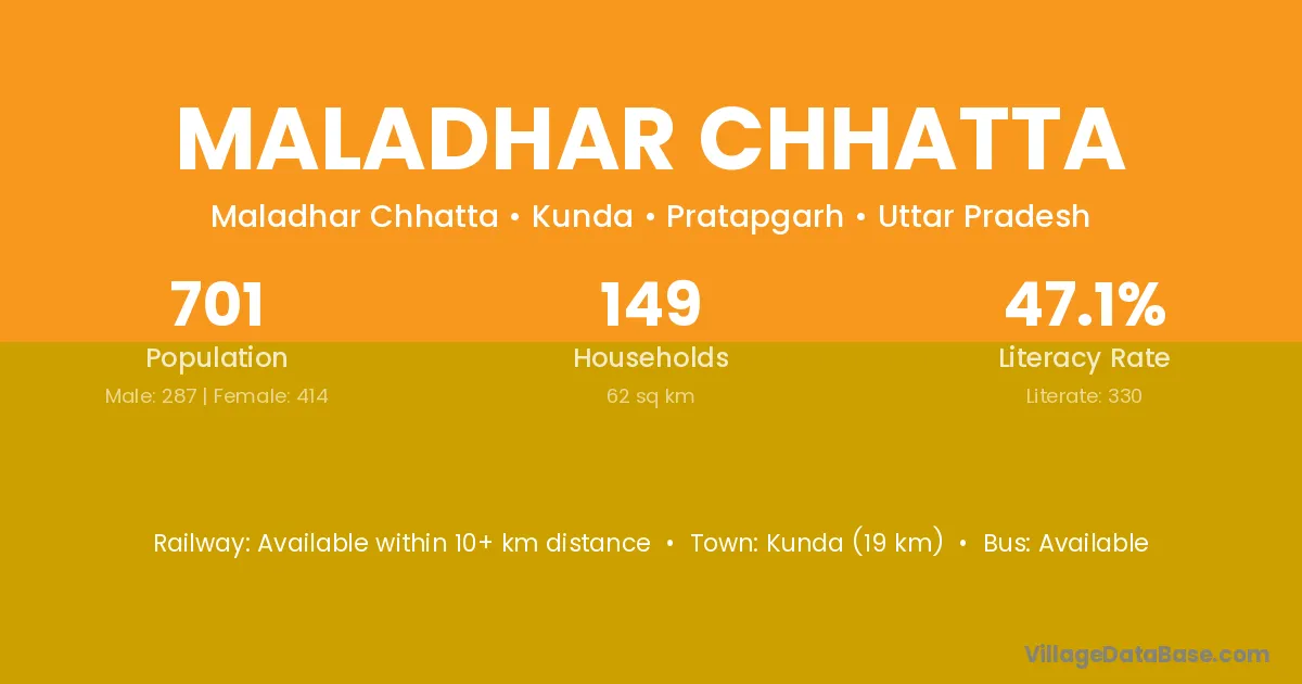 Maladhar Chhatta village has a total population of 701 people, of which 287 are males and 414 are females.