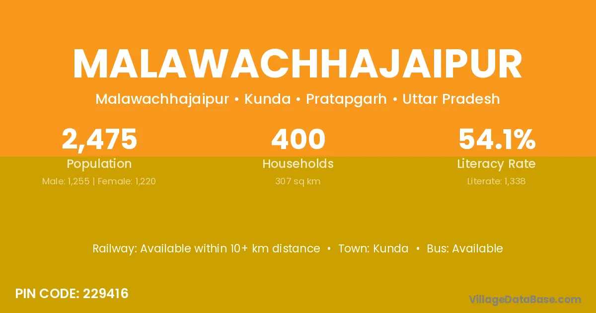 Malawachhajaipur village has a total population of 2,475 people, of which 1,255 are males and 1,220 are females.