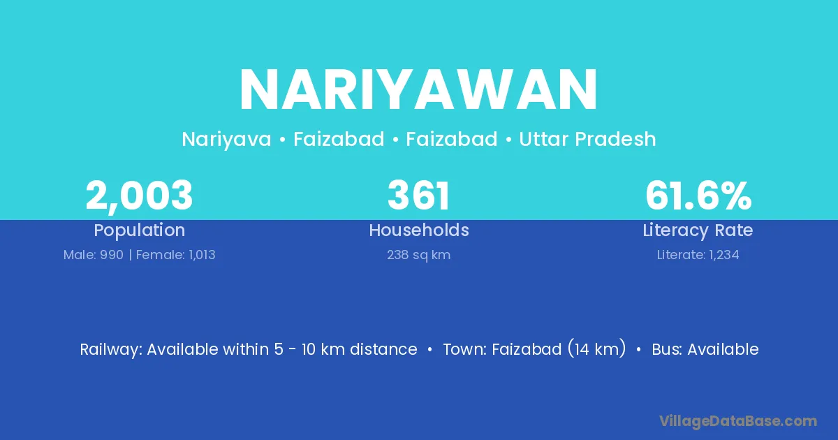 Nariyawan village has a total population of 4,332 people, of which 2,094 are males and 2,238 are females.