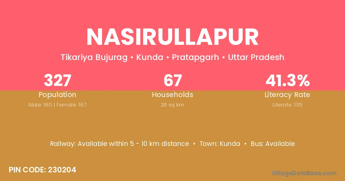 Nasirullapur village has a total population of 327 people, of which 160 are males and 167 are females.