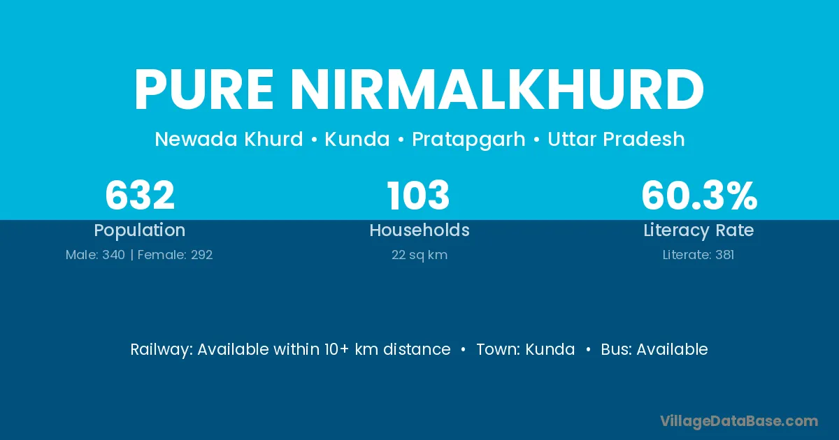 Pure Nirmalkhurd village has a total population of 632 people, of which 340 are males and 292 are females.