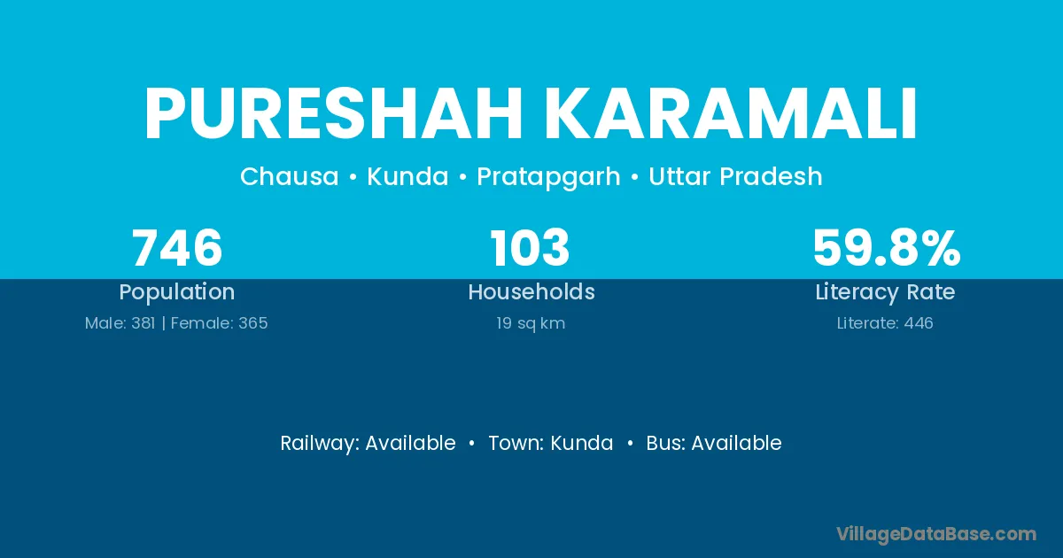 Pureshah Karamali village has a total population of 746 people, of which 381 are males and 365 are females.