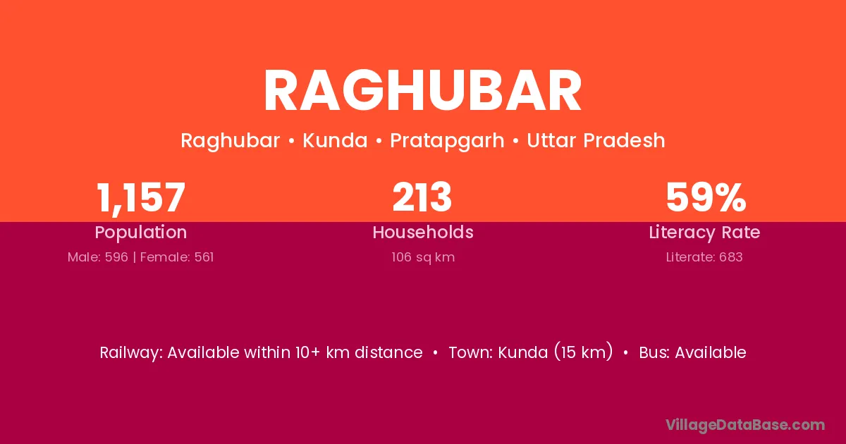 Kunda (15 km) is the nearest town to Raghubar village for major economic activities and is located approximately 15 km away.