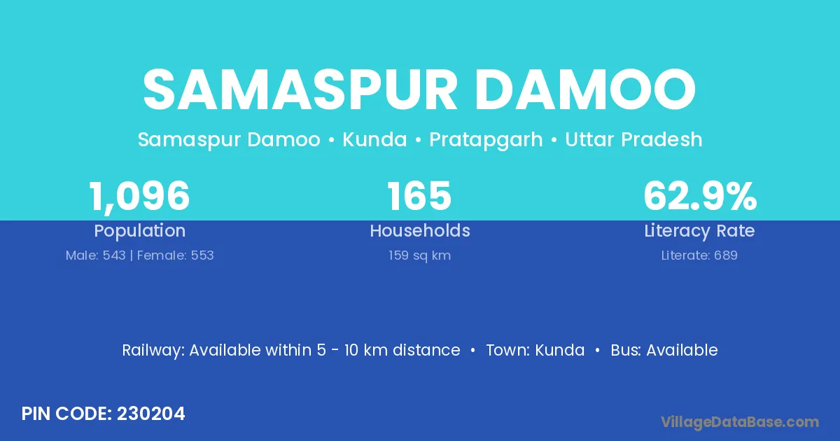Samaspur Damoo village has a total population of 1,096 people, of which 543 are males and 553 are females.