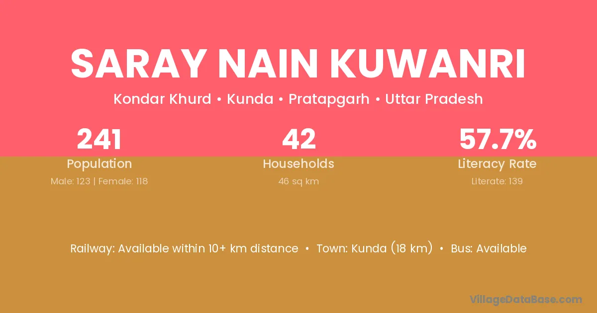 Saray Nain Kuwanri village has a total population of 241 people, of which 123 are males and 118 are females.