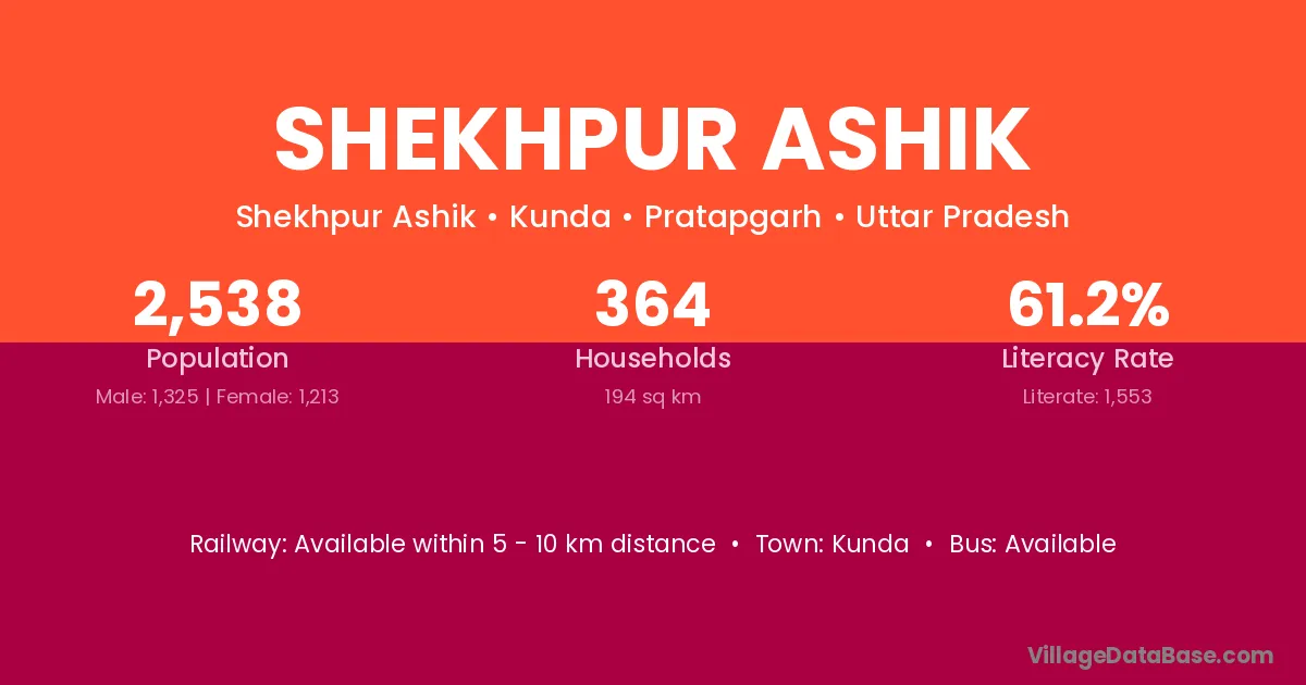 Shekhpur Ashik village has a total population of 2,538 people, of which 1,325 are males and 1,213 are females.