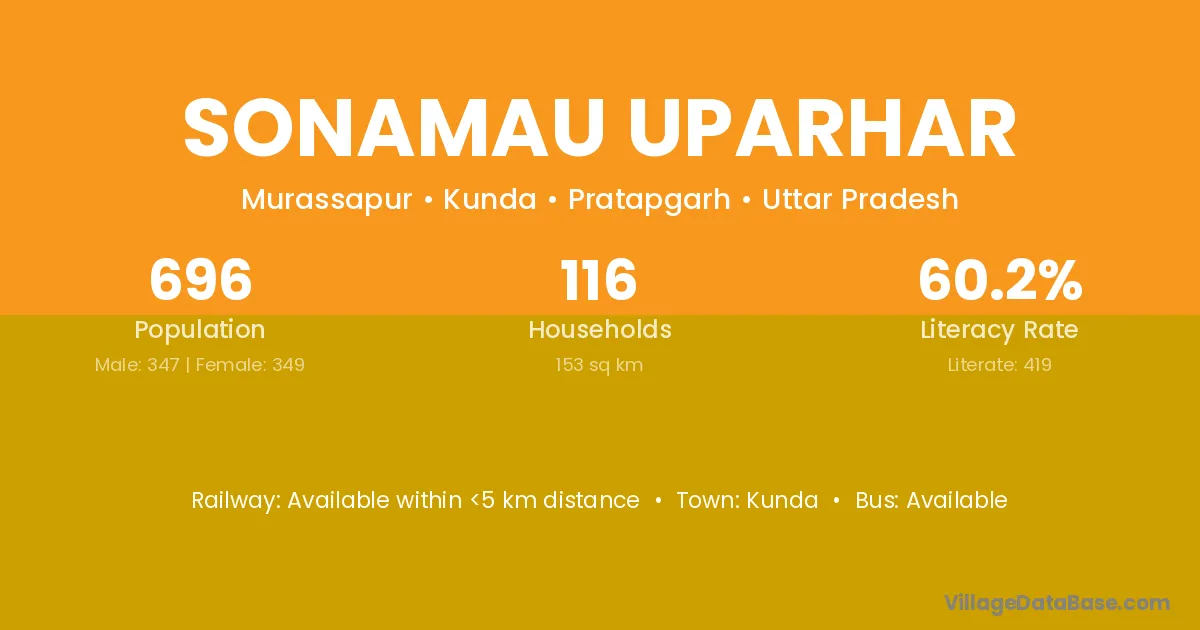 Sonamau Uparhar village has a total population of 696 people, of which 347 are males and 349 are females.