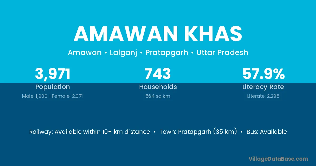 Pratapgarh (35 km) is the nearest town to Amawan Khas village for major economic activities and is located approximately 35 km away.