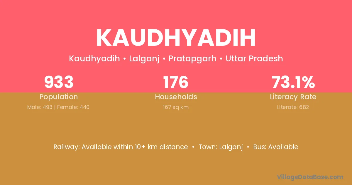 Kaudhyadih village has a total population of 933 people, of which 493 are males and 440 are females.