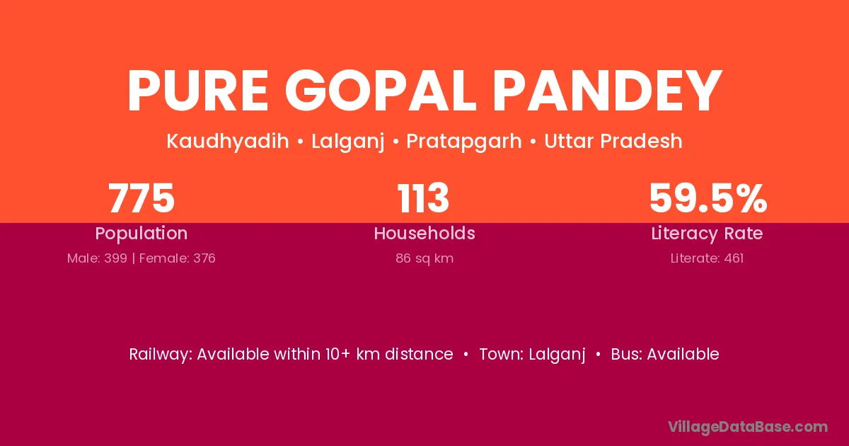 Pure Gopal Pandey village has a total population of 775 people, of which 399 are males and 376 are females.