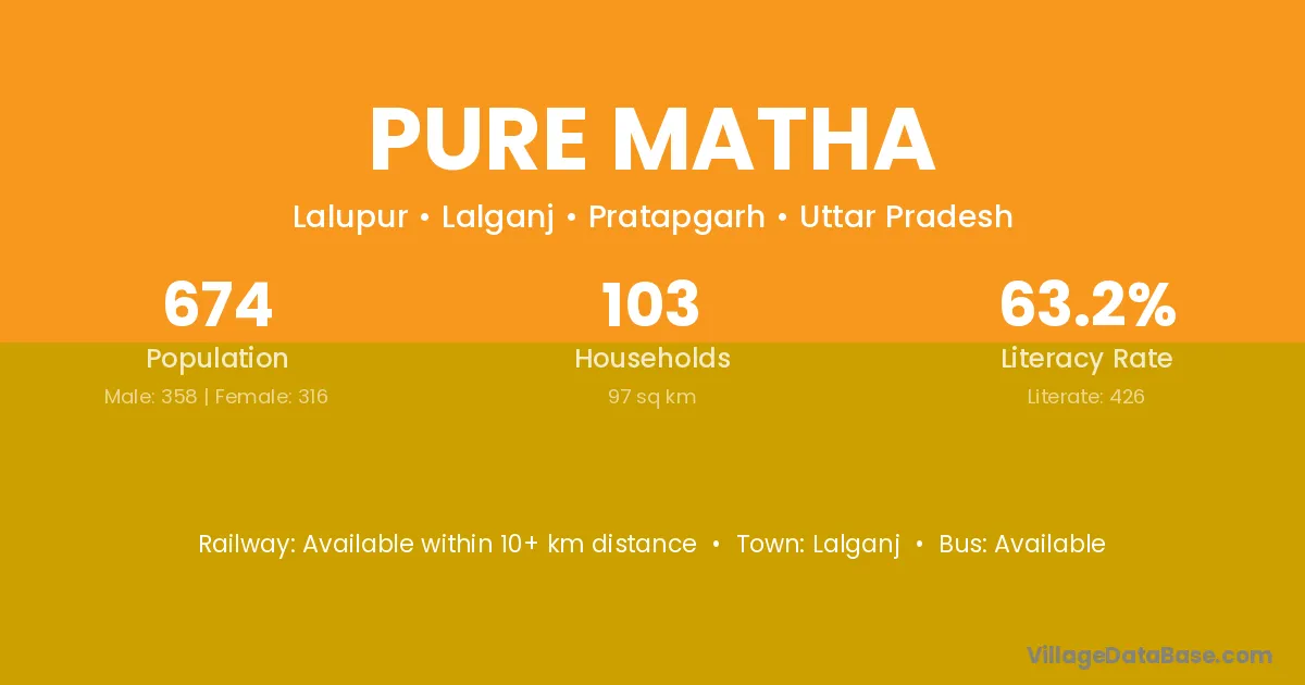 The literacy rate of Pure Matha village is 63.20%. Male literacy stands at 73.74% and female literacy at 51.27%.