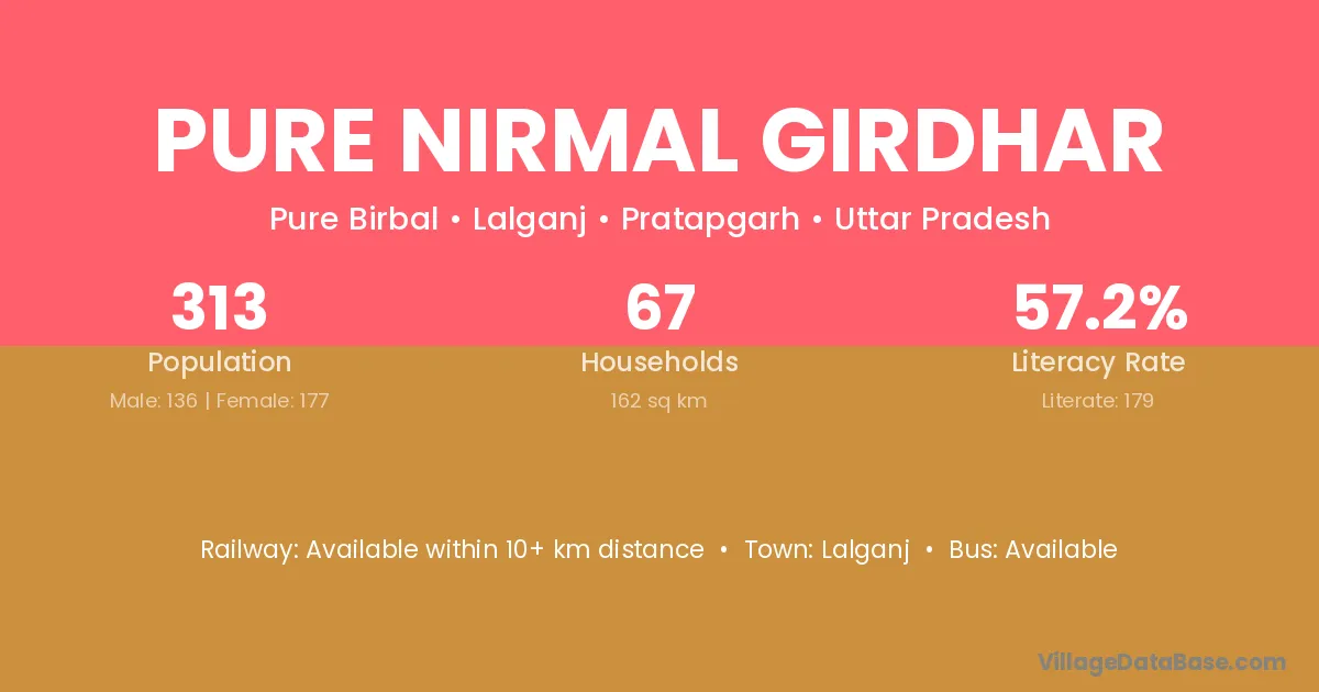 Pure Nirmal Girdhar village has a total population of 313 people, of which 136 are males and 177 are females.