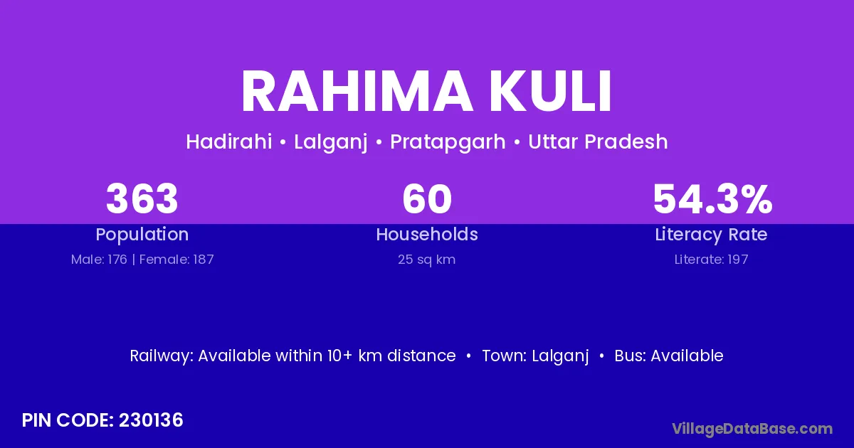 Rahima Kuli village is located in the Lalganj Tehsil of the Pratapgarh district in Uttar Pradesh .