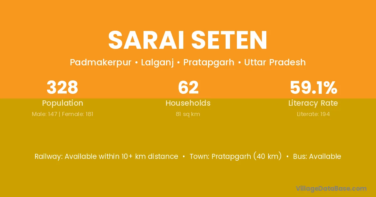 Pratapgarh (40 km) is the nearest town to Sarai Seten village for major economic activities and is located approximately 40 km away.