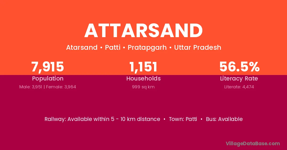 Attarsand village has a total population of 7,915 people, of which 3,951 are males and 3,964 are females.