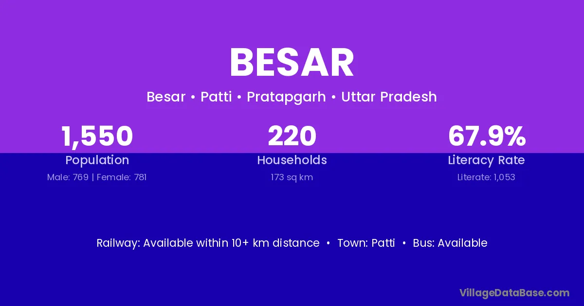 Besar village is located in the Patti Tehsil of the Pratapgarh district in Uttar Pradesh .