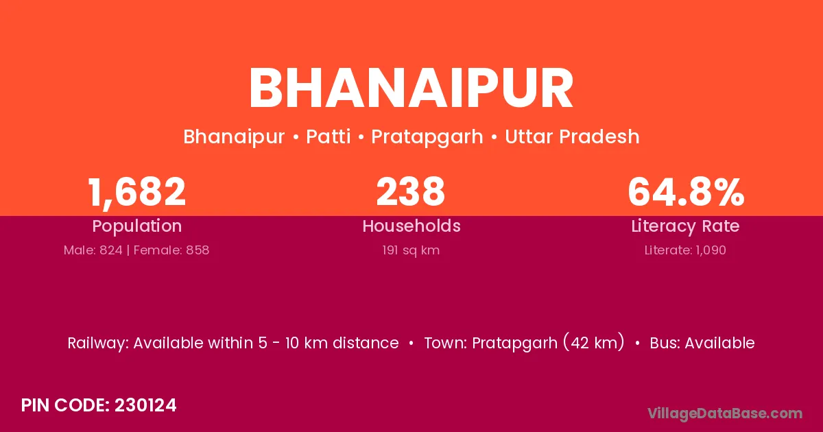 Pratapgarh (42 km) is the nearest town to Bhanaipur village for major economic activities and is located approximately 42 km away.