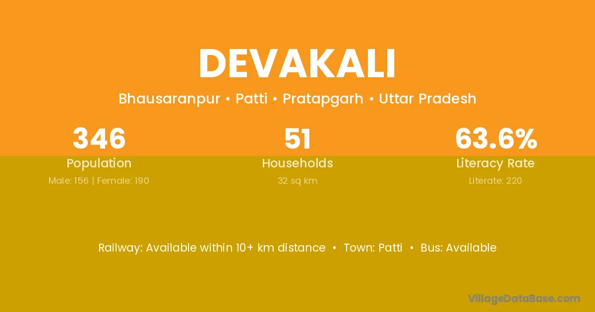 Devakali village has a total population of 346 people, of which 156 are males and 190 are females.