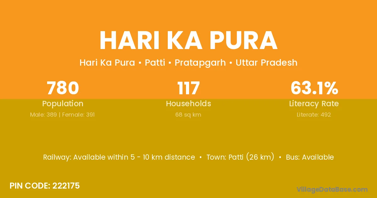 Hari Ka Pura village has a total population of 780 people, of which 389 are males and 391 are females.
