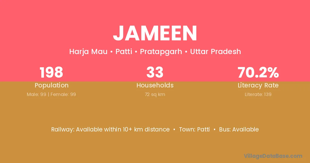 Jameen village is located in the Patti Tehsil of the Pratapgarh district in Uttar Pradesh .