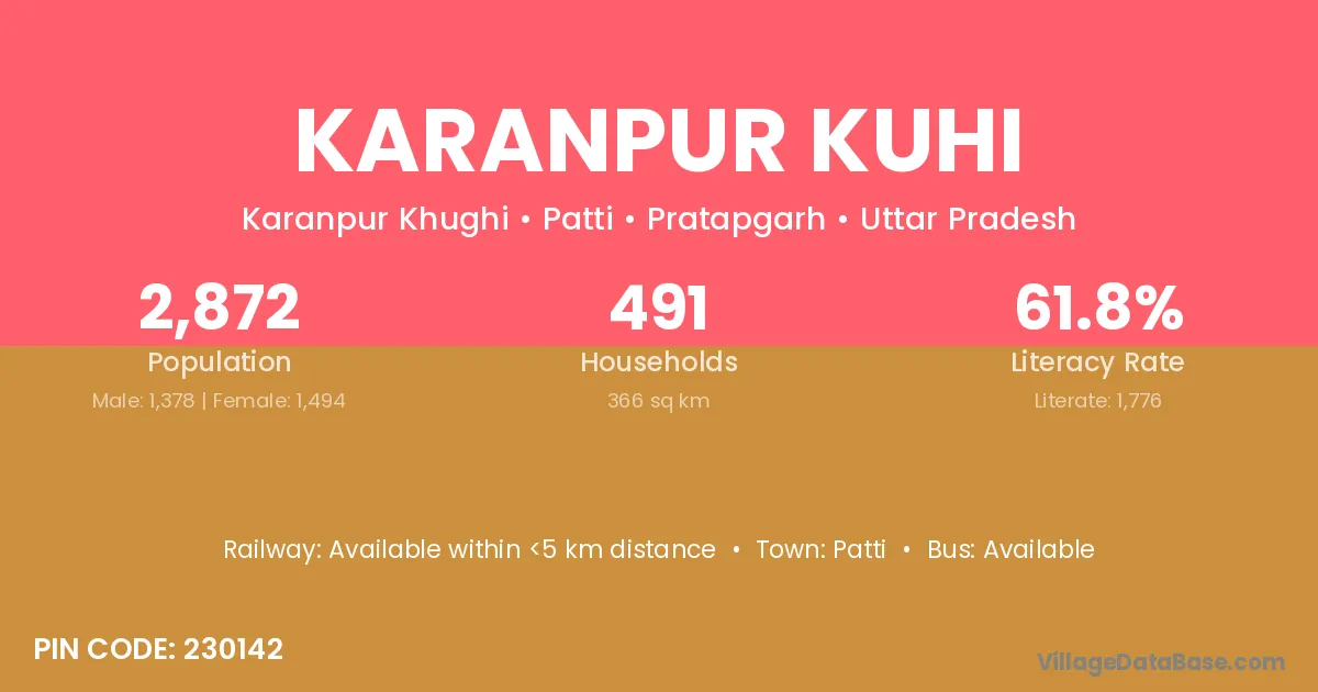 Karanpur Kuhi village has a total population of 2,872 people, of which 1,378 are males and 1,494 are females.