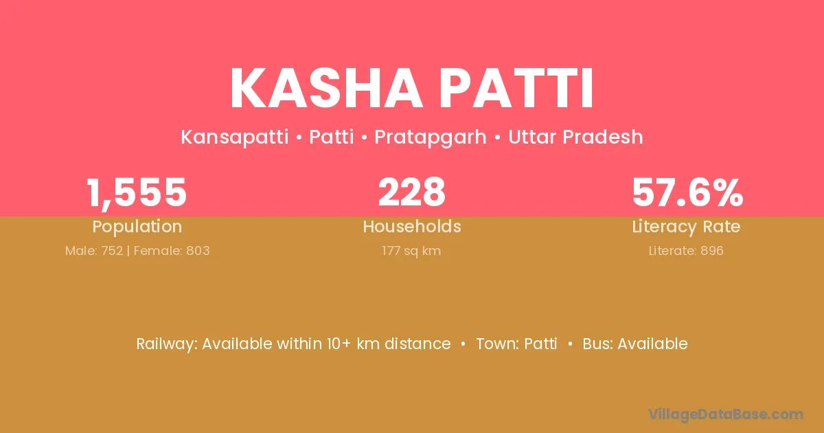 Kasha Patti village is located in the Patti Tehsil of the Pratapgarh district in Uttar Pradesh .