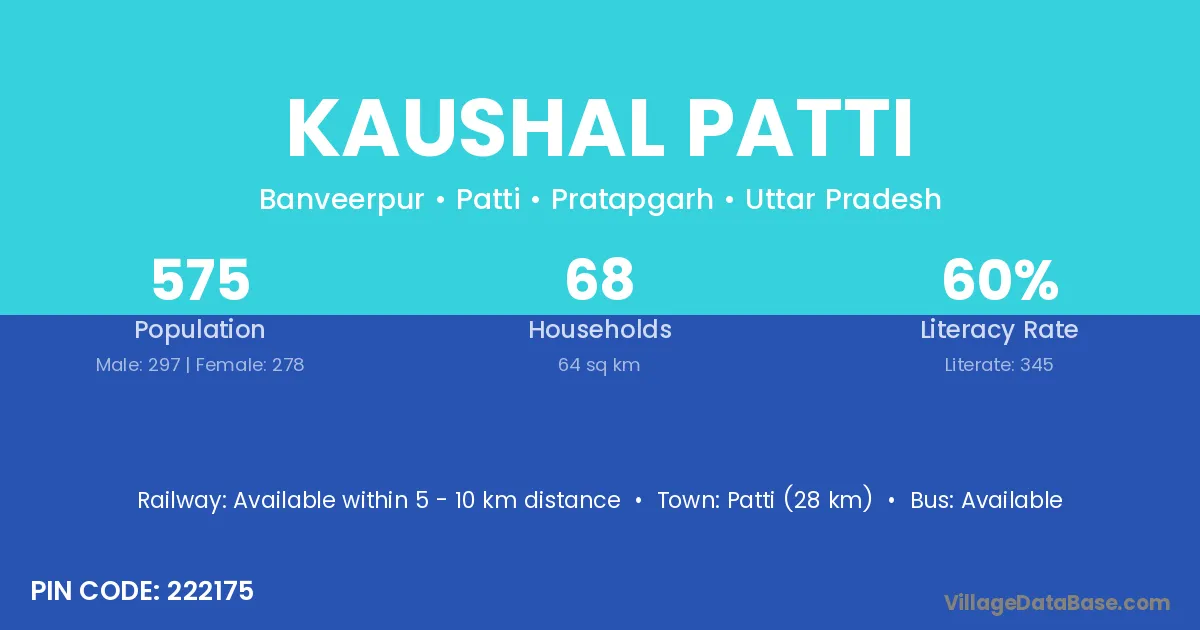 Kaushal Patti village has a total population of 575 people, of which 297 are males and 278 are females.